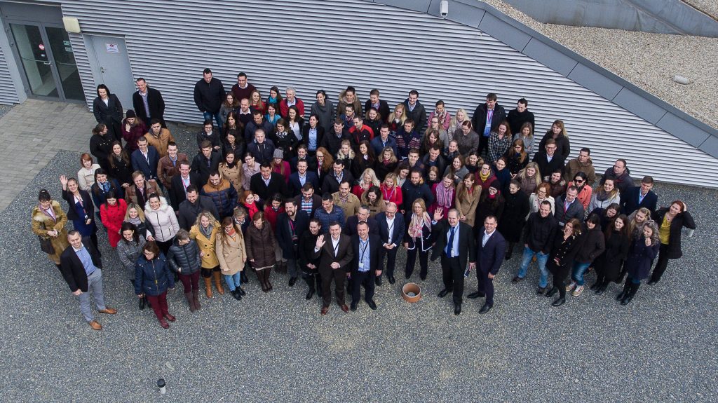 Tímová fotka Centra zdieľaných služieb pre financie a kontroling počas historicky prvej návštevy CEO Deutsche Telekom Services Europe.